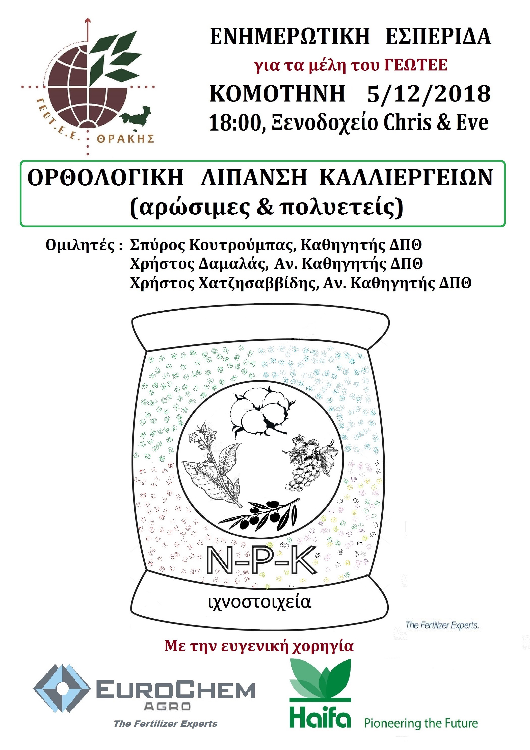 Νέα - ΠΑΡΑΡΤΗΜΑ ΘΡΑΚΗΣ: ΕΝΗΜΕΡΩΤΙΚΗ ΕΣΠΕΡΙΔΑ «ΟΡΘΟΛΟΓΙΚΗ ΛΙΠΑΝΣΗ ΚΑΛΛΙΕΡΓΕΙΩΝ (ΑΡΩΣΙΜΕΣ & ΠΟΛΥΕΤΕΙΣ)» (ΚΟΜΟΤΗΝΗ, 5/12/2018)