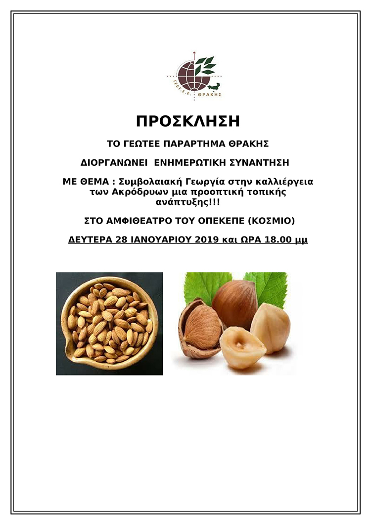 Νέα - ΠΑΡΑΡΤΗΜΑ ΘΡΑΚΗΣ: ΕΝΗΜΕΡΩΤΙΚΗ ΣΥΝΑΝΤΗΣΗ ΓΙΑ ΤΗΝ ΚΑΛΛΙΕΡΓΕΙΑ ΤΩΝ ΑΚΡΟΔΡΥΩΝ (ΚΟΜΟΤΗΝΗ, 28/1/2019)