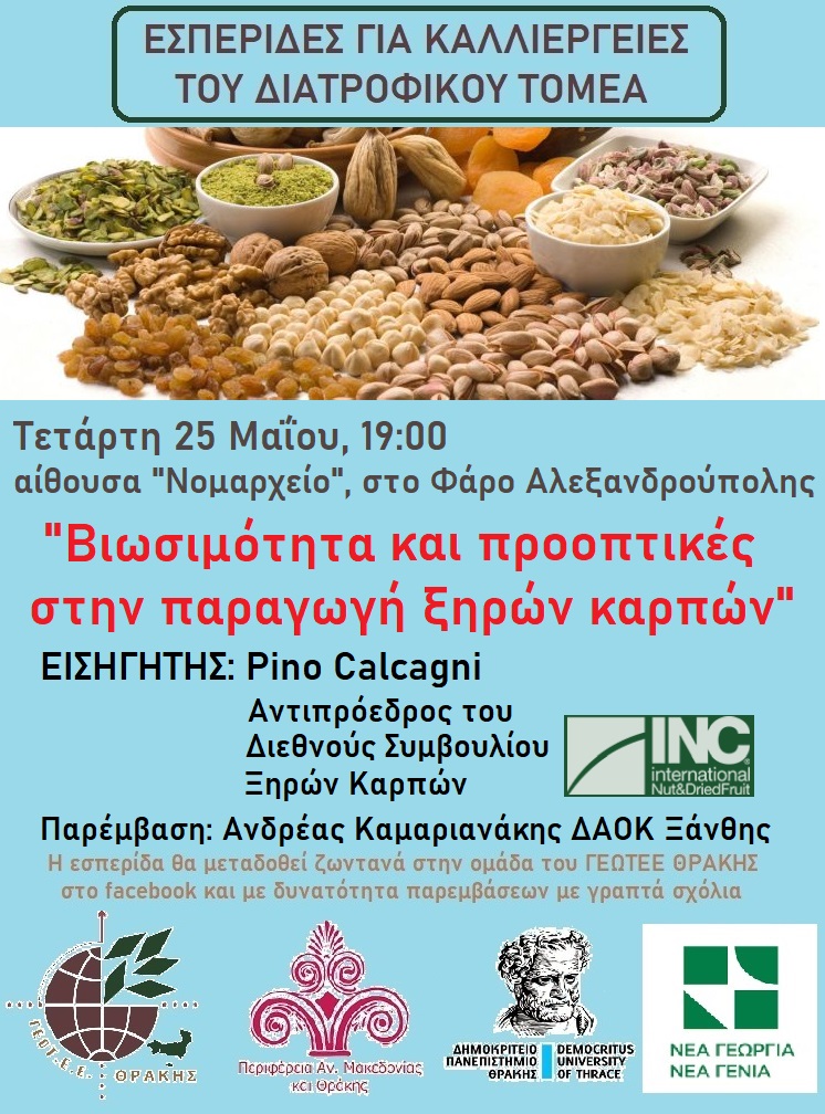 Νέα - ΠΑΡΑΡΤΗΜΑ ΘΡΑΚΗΣ: ΕΣΠΕΡΙΔΑ - «ΒΙΩΣΙΜΟΤΗΤΑ ΚΑΙ ΠΡΟΟΠΤΙΚΕΣ ΣΤΗΝ ΠΑΡΑΓΩΓΗ ΞΗΡΩΝ ΚΑΡΠΩΝ»